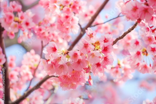 © Ximena, Obraz premium Close-Up of a Cherry Blossom Branch in Full Bloom During Spring.