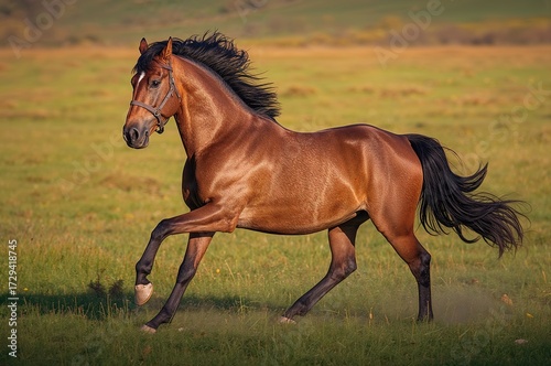 Obraz premium Close-up of a chestnut horse running through a fall meadow