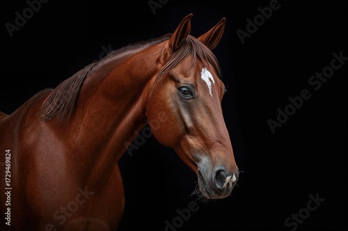 © Rizvan, Obraz premium Close-up of a chestnut horse with a dark backdrop