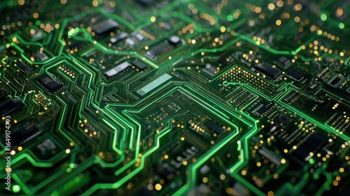 Obraz premium Close-up of a Circuit Board's Intricate Green Pathways