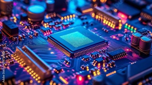 © Visioner, Fototapeta premium Close-up of a Circuit Board with a Processor Chip