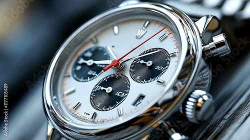 Fototapeta premium Close-up of a Classic Chronograph Wristwatch: A Timeless and Elegant...
