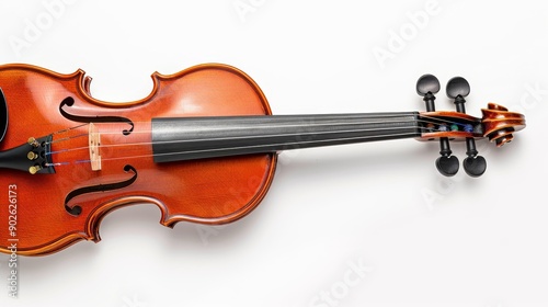 Fototapeta premium Close-up of a classic violin and bow, isolated on a clean white background,...