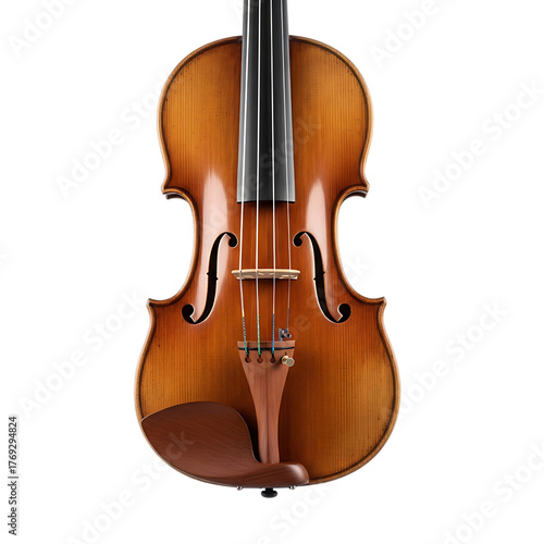 Fototapeta premium Close-up of a classic, wooden stringed instrument with four strings, bridge, f-holes, and a chin rest. It is a solo instrument