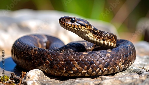 © darren, Fototapeta premium Close-up of a coiled snake on rocks