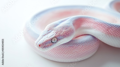 © Ivan, Fototapeta premium Close-up of a coiled white and pink snake with striking eyes.