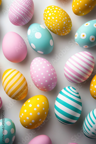 Fototapeta premium Close-up of a collection of beautifully decorated Easter eggs on a clean,...