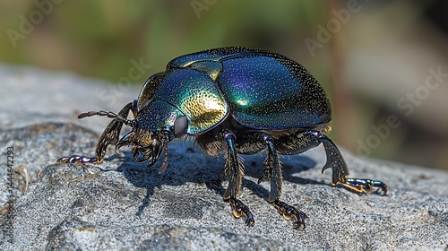 © time, Naklejka premium Close-up of a colorful beetle on a stone