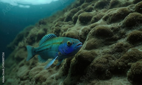© diditlagi, Fototapeta premium close-up of a colorful deep-sea fish with bioluminescent features swimming gracefully