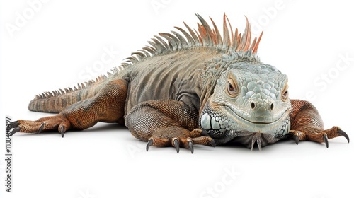 © OnuTH, Obraz premium Close-Up of a Colorful Iguana on a White Background