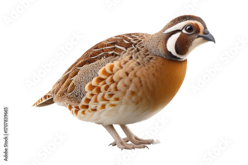 © eclipse, Fototapeta premium Close-up of a colorful quail with distinctive plumage on black background, cut out