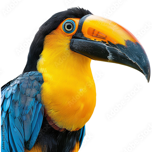 © Seksan, Naklejka premium Close-up of a colorful toucan with a vibrant beak and feathers, showcasing the beauty of tropical wildlife.