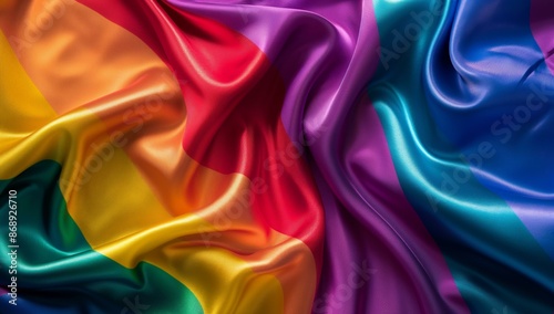 Fototapeta premium Close-up of a colorful, wavy rainbow fabric.