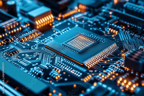 © Isnaini, Obraz premium Close-up of a computer circuit board with processor