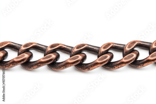 Obraz premium Close-up of a copper chain isolated on a white background.