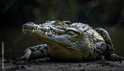 © lord, Obraz premium Close-up of a crocodile resting in the shadows.