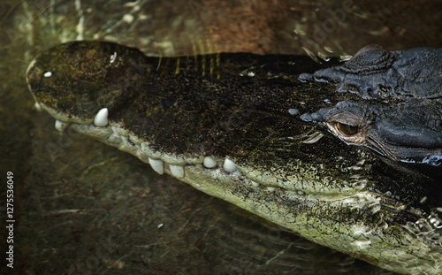 Obraz premium Close-up of a crocodile's head in water