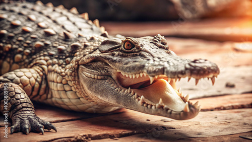 © Watcharakorn, Obraz premium close up of a crocodilecrocodile, alligator, reptile, animal, teeth, wildlife, dangerous, predator, wild, nature, danger, mouth, zoo, head, eye, water, carnivore, skin, croc, gator, closeup, tooth, ni