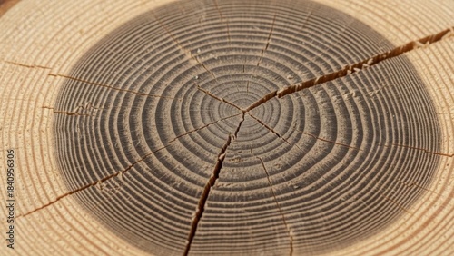 Fototapeta premium Close-up of a cross-section of a tree trunk with annual rings.