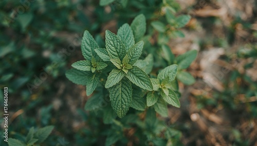 Fototapeta premium Close-up of a cultivated mint herb from above with focused detail