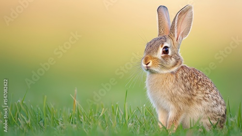 Fototapeta premium Close-Up of a Curious Rabbit in a Natural Green Setting with Soft Blurred...