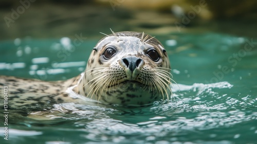 Fototapeta premium Close-Up of a Curious Seal Swimming in Clear Blue Water