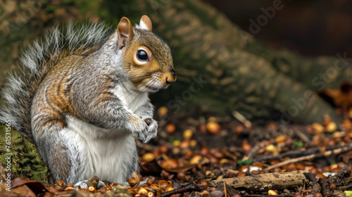 Fototapeta premium Close-up of a curious squirrel in nature, detailed fur texture and alert expression captured