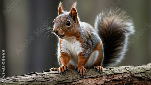 Obraz premium Close-Up of a Curious Squirrel Peeking from Behind a Tree Trunk in Nature