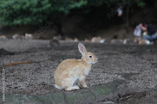 Fototapeta premium Close up of a cute brown rabbit on floor, Hiroshima, Japan, soft focus
