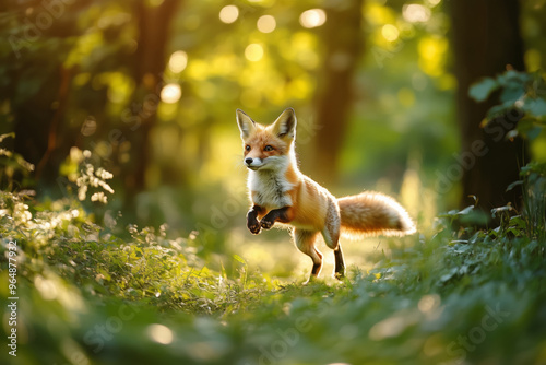© Vitalii, Fototapeta premium Close-up of a cute fox running in an autumn forest