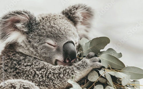 Obraz premium Close-up of a cute koala eating eucalyptus leaves.