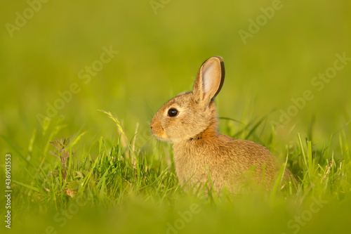 Fototapeta premium Close up of a cute little rabbit sitting in grass