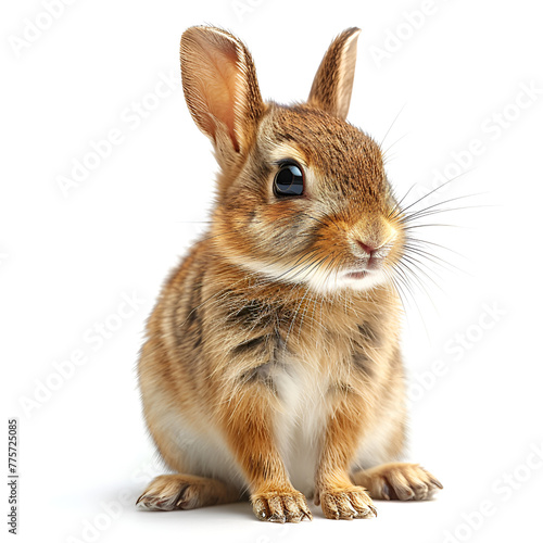 © neatlynatly, Fototapeta premium Close-up of a cute rabbit on a white background displaying its big ears and furry texture.