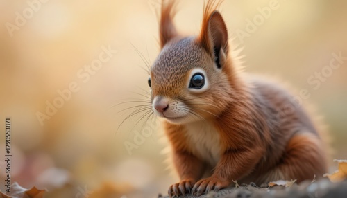 Obraz premium Close-up of a cute red squirrel in autumn.