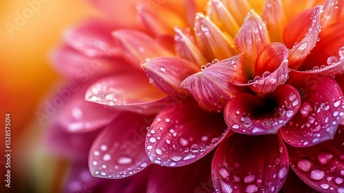 Fototapeta premium Close-up of a dahlia flower with water drops. Soft focus. Colorful...