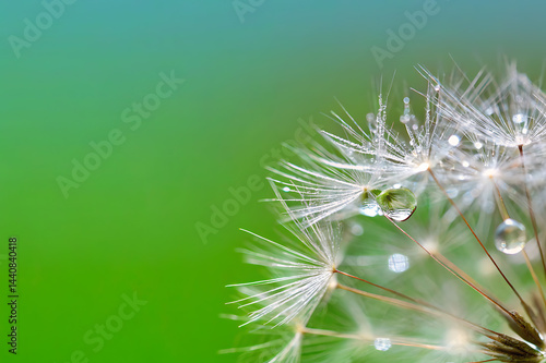 © Cuteart009, Fototapeta premium Close-up of a dandelion exhibiting a dreamy and delicate appearance, highlighting the macro details of its white fluffy seeds and the abstract texture of nature.