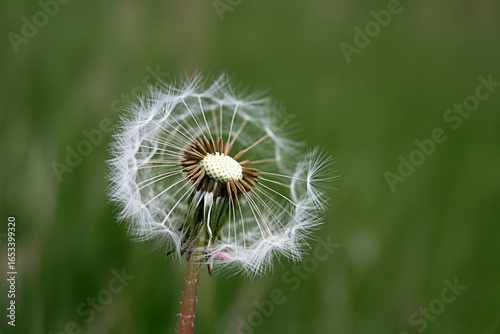 Fototapeta premium Close up of a dandelion flower with seeds ready to be blown away in a green...