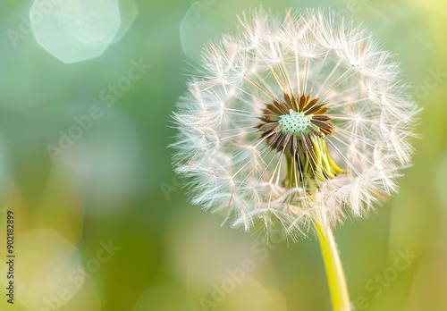 Fototapeta premium Close-Up of a Dandelion with Dreamy Bokeh Background