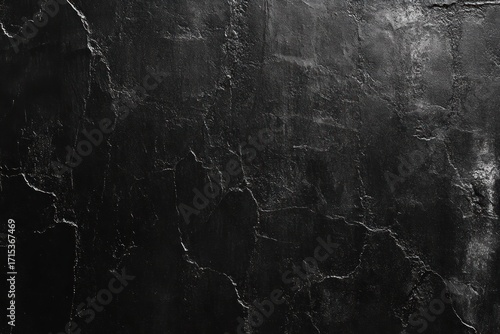 © Milana, Naklejka premium close-up of a dark, cracked textured wall with rough surface and subtle highlights
