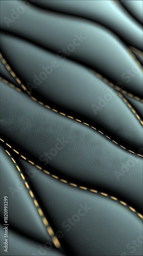 © nur, Obraz premium Close-up of a dark, quilted leather surface with visible golden stitching, creating an abstract, luxurious texture and pattern.
