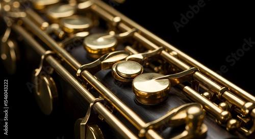 Fototapeta premium Close-up of a Dark Wood Oboe's Golden Keywork, Exquisite Detail