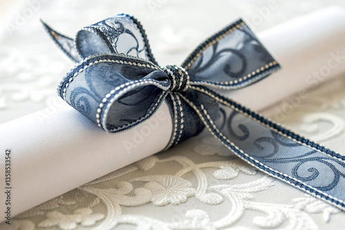 Fototapeta premium Close-Up of a Decorative Bow Knot on a Scroll of Paper with Clear Details on...