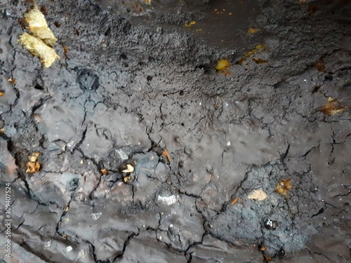 Obraz premium close-up of a decorative wall made of concrete, with a characteristic rough porous texture, abstract dark and light stains