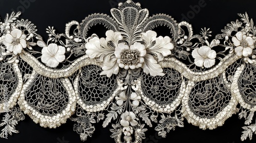 Obraz premium Close-up of a delicate lace pattern with elaborate floral and geometric designs.