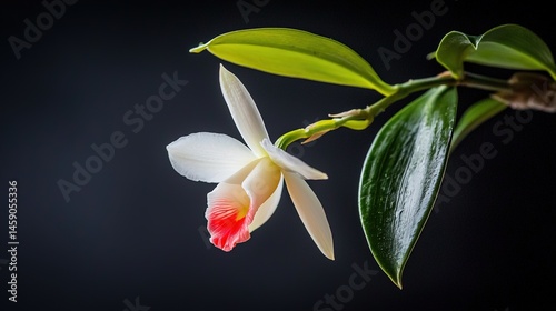 © Maksday, Fototapeta premium Close-up of a delicate orchid flower against a dark background.