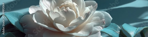 Obraz premium Close-up of a delicate white camellia flower.