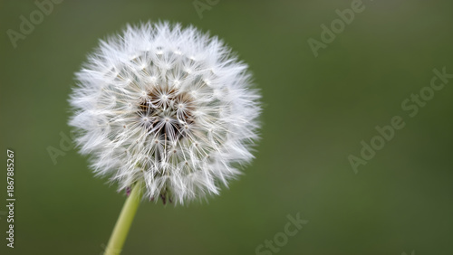 © Siti, Fototapeta premium Close-up of a delicate white dandelion seed head against a soft green blurred background, symbolizing nature's ephemeral beauty