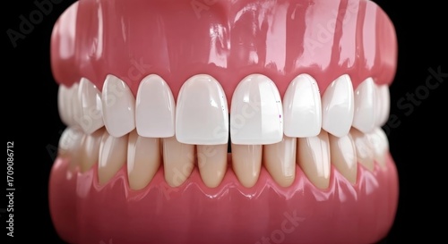 Obraz premium Close up of a dental model showing upper and lower white teeth