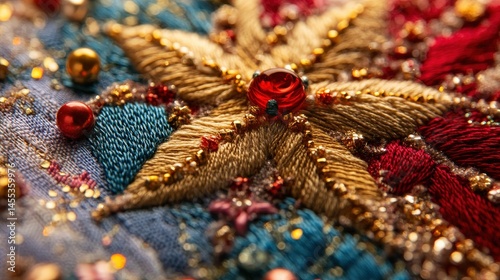 © navisatul, Naklejka premium Close-up of a detailed embroidered star motif.