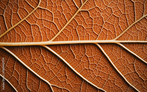 © Suritong, Obraz premium Close-up of a detailed leaf texture on a brown background.